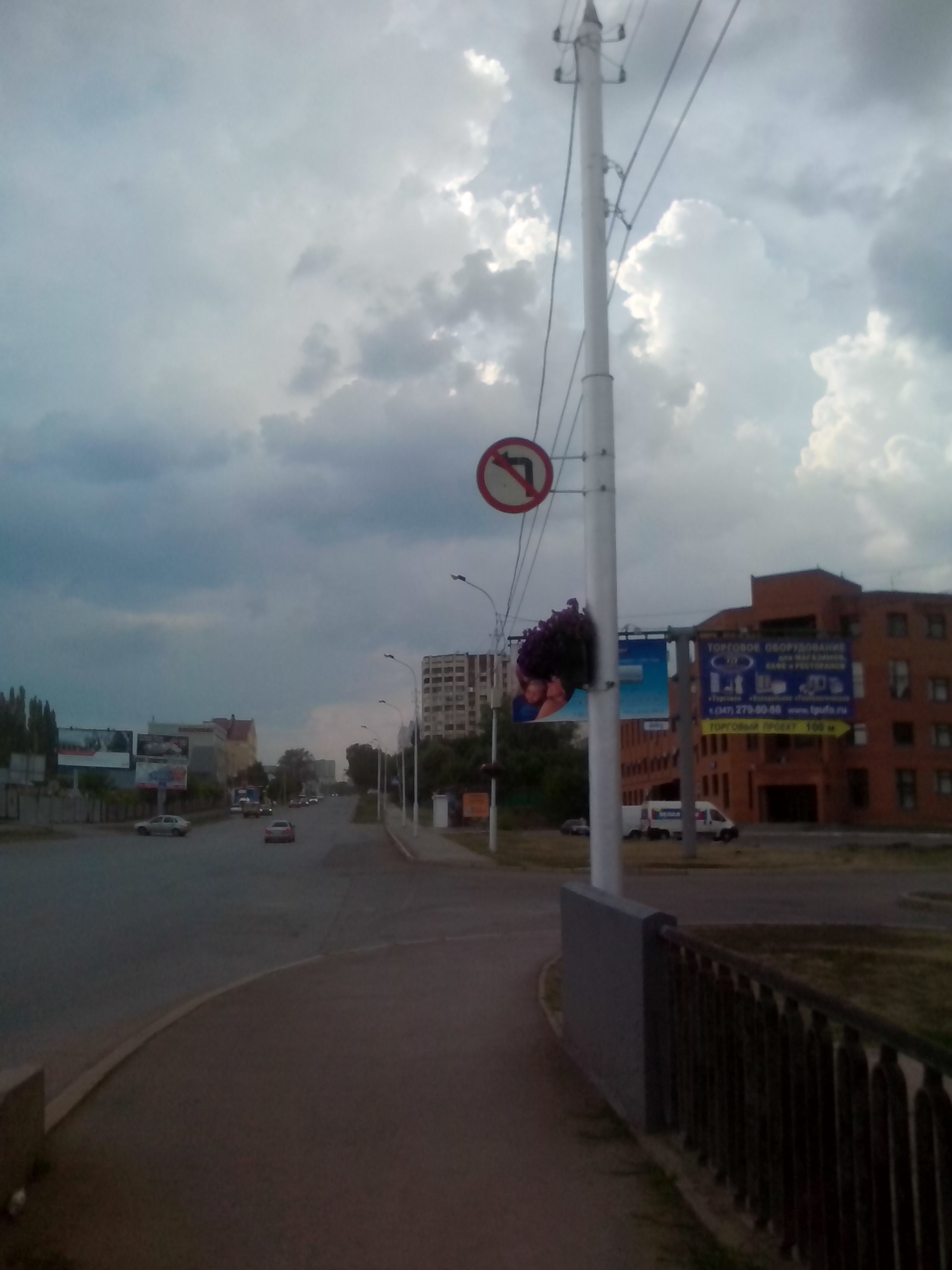 Водитель, двигаясь со стороны улицы Губайдуллина в направлении улицы Кирова обнаруживает дорожный знак "поворот налево запрещён"(см. фото). В надежде выехать на проспект Салавата Юлаева он сворачивает после знака направо. На проспект он не попадёт, потому что окажется на полосе встречного движения, по которой выезжают С ПРОСПЕКТА.