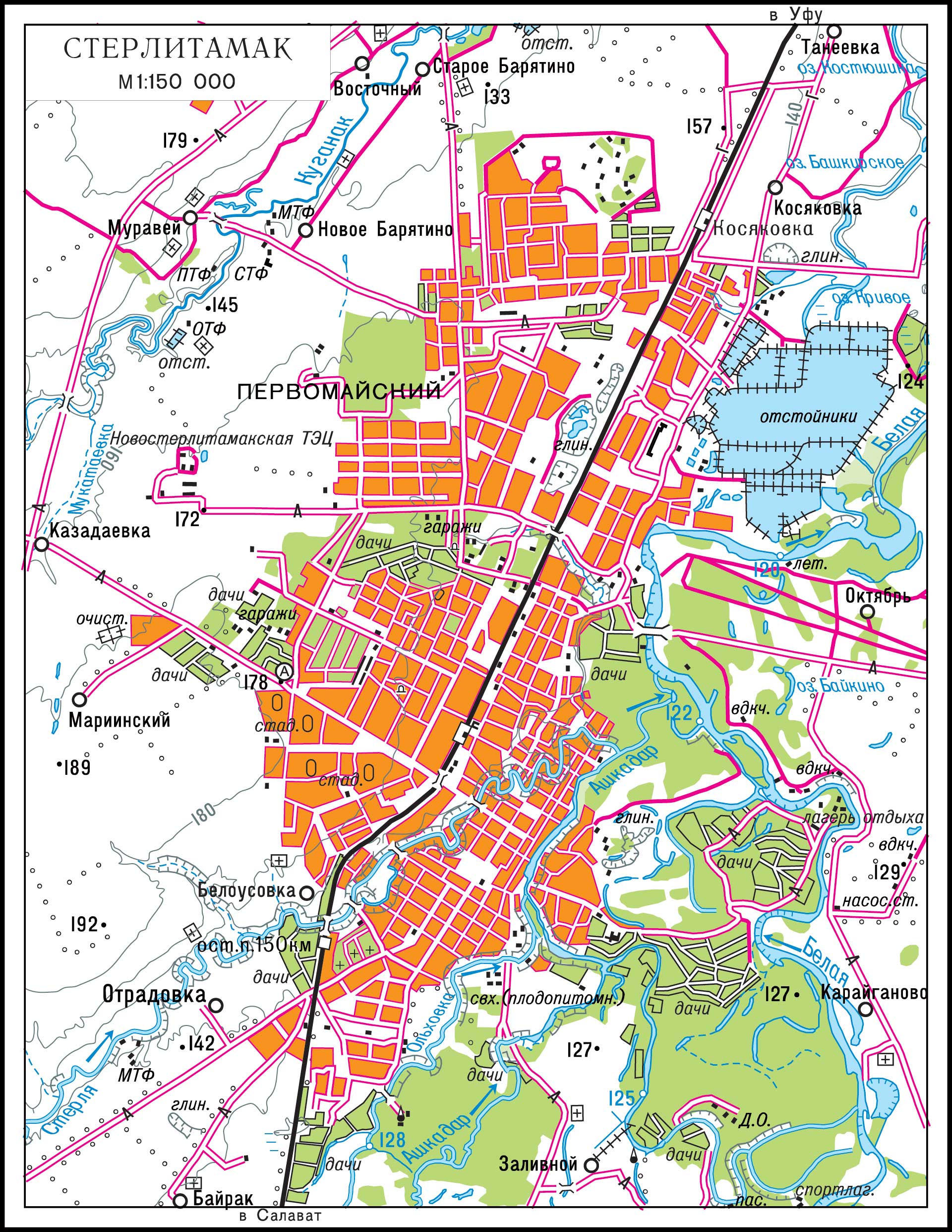 СТЕРЛИТАМАК (Стәрлетамаҡ), город и ж.‑д. станция в РБ, адм. центр Стерлитамакского р‑на (с 1930). Расположен на р.Белая в 130 км от Уфы. Пл. — 109 км2. Нас. (тыс. чел.): в 1906 — 14,6; 1920 — 25,6; 1939 — 39,0; 1959 — 111,0; 1989 — 247,5; 2002 — 264,4; 2‑й по числ. нас. после Уфы. Нац. состав (2002): русские — 49,7%, татары — 23%, башкиры — 15,6%.