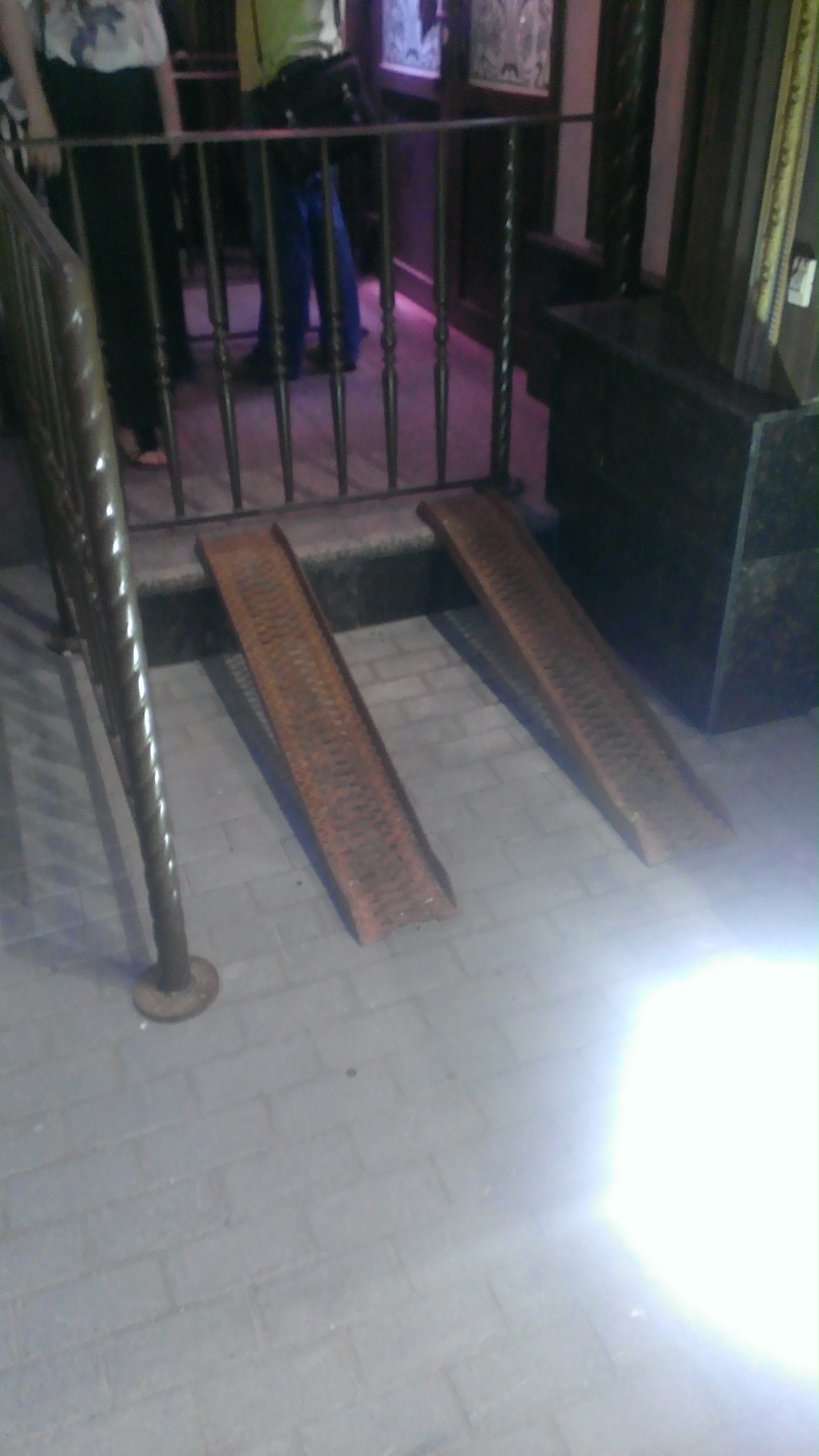 Пандус для въезда и кнопка для вызова установлены, но въезд по пандусу заблокирован перилами. Прошу проверить соответствует ли данный пандус нормативам.