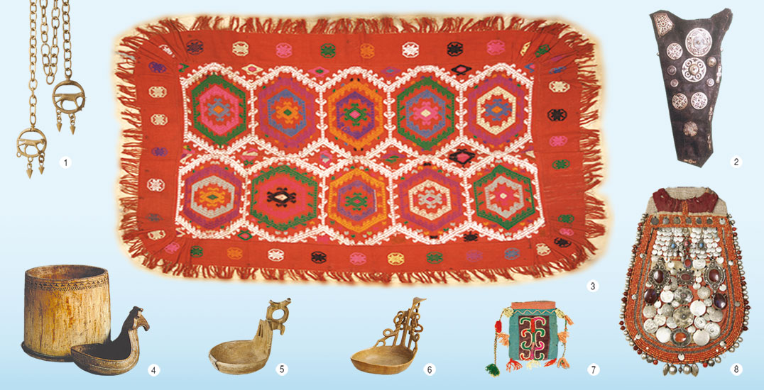 Башҡорттарҙа традицион сәнғәт, йорт кәсептәре 20 б. тиклем халыҡ художестволы ижадының төп һәм берҙән-бер формаһы була. Башҡ. халыҡ Б.‑ҡ.с. күп быуаттар дауамында төрки халыҡтарҙың күсмә мәҙәниәте традициялары йоғонтоһонда үҫешә, уның шарттарында көнкүреш әйберҙәренең ғәҙәткә ингәндәре һәм иң кәрәклеләре билдәләнә: йорт кәрәк-ярағы, кейем-һалым, аяҡ кейеме, ат егеү һәм һыбай йөрөү кәрәк-ярағы, диниғибәҙәт әйберҙәре һ.б. Натураль хужалыҡ, күсмә малсылыҡ һәм игенселек үҙенсәлектәре башҡорттарҙың традицион шөғөлдәрен һәм Б.‑ҡ.с. төрҙәрен (ҡара: Аппликация, Бәйләү, Балаҫ һуғыу, Кейеҙ баҫыу, Сигеү, Тула баҫыу, Туҡыусылыҡ, Үреү), ш. уҡ тәбиғи материалды (ағас, металл), бигерәк тә күсмә хужалыҡ продукттарын (йөн, тире, дебет, ат ҡылы һ.б.) нәфис эшкәртеү алымдарын билдәләгән. Көнкүрештә ҡулланылған әйберҙәр, биҙәк-һыр һалып эшләнмәгән булһалар ҙа, Б.‑ҡ.с. теге йәки был төрөнөң һирәк осрай торған уникаль өлгөләрен тәшкил итә. Улар материалдың тәбиғи матурлығын күрһәтеүсе фактура һәм форма баҙыҡлығы м‑н айырылып тора. Әйберҙәрҙе быуындан-быуынға тапшыра килеп, һаҡсыл тотонғандар, уларға ғаилә-ырыу билдәһе — тамға ҡуйыр булғандар, ул башҡ. орнаменты барлыҡҡа килеүенең һәм үҫешенең иң боронғо һәм йөкмәткеле сығанаҡтарының береһе булып тора. Ваҡыт үтеү м‑н был тамғалар донъяның йәнле матдилығынан һәм реаль ысынбарлығынан айырыла, күп йәһәттән тәүге мәғәнәләрен юғалтып, билдәләр, символдар ғына булып ҡалған саф абстракт-геометрик форма теленә әйләнә. Был исламдың тере йәндәрҙе һүрәтләүҙе тыйыуына бәйле була. 20 б. башына тиклем башҡорттарҙың орнаменталь-декоратив фекерләүе донъяны художестволы танып-белеүҙең берҙән-бер ысулы була, һәм ул орнамент композицияһының төп нөктәләре — үҙәге һәм периферияһы, өҫ һәм аҫ яғы — аныҡ билдәләнгән көнкүреш кәрәк-ярағының тышҡы күренешен һәм формаһын орнаменттың пластик, ритмик һәм төҫ саралары м‑н тәртипкә килтереүгә, гармониялы итеп ойошторорға ынтылышында сағыла. Торлаҡ, тәү сиратта уның традицияға ярашлы йыйыштырылыуы, донъяның төҙөклөгө һәм берҙәмлегенең һоҡланғыс бер өлгөһө булған (ҡара: Тирмә, Традицион интерьер). Тирмәнең йыйылма конструкцияһын, йорт кәрәк-ярағын, һауытһабаны, йыһаздарҙы ағастан, ҡайын туҙынан яһағандар (ҡара: Ағастан эшләнгән өй кәрәк-ярағы, Туҙҙан эшләнгән өй кәрәк-ярағы). Күсмә тормош торлағында һандыҡ һәм уның аҫтына ҡуйыла торған урын-аяҡ булған, улар һырлап яһалған ябай геометрик һүрәт м‑н биҙәлгән һәм ғәҙәттә 2—3 төҫкә буялған. Һауыт-һабанан аҙыҡ-түлек әҙерләү һәм уны һаҡлау өсөн тәпән, батман, силәк, күнәк, көбө һ.б. төрлө ҙурлыҡтағы һауыттар ҡулланылған, уларҙы ябай һәм бер төрлө формалы, ныҡлы итеп эшләгәндәр, шымартҡандар, биҙәк һалмағандар йәки ситенә бер генә рәт һырлап ябай биҙәк (мәҫ., шыршы формаһында) яһағандар. Әйберҙәрҙе эшләгәндә уларҙың уңайлылығы һәм көнкүрештә кәрәклеге, формаһының традиционлығы, ағастың күркәм текстураһын күрһәтеү төп шарт булған. Бөтөн ағас киҫәгенән сылбыр эшләү (1,5 метр оҙонлоҡҡа тиклем) үтә нәфис нескә эш өлгөһө булған. Бындай сылбыр уртаһында йәнлек һыны рәүешендәге тотем билдәһе (ҡара: Тотемизм) эшләнгән ҡулса м‑н тамамланған. Ҡайһы бер осраҡта сылбыр һыу ҡошо һынын хәтерләткән ижау м‑н бер бөтөн булған — был традицион Б.‑ҡ.с. һүрәтләү сараһының һирәк өлгөһө. Ағасты һырлап яһалған биҙәк йыш ҡына орсоҡта, дуға, эйәр, ҡамыт к