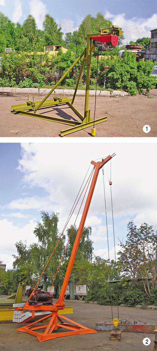В Башкортостане с 1969 на Уфимском краностроительном заводепроизводятся краны козловые (грузоподъёмность 5—12,5 т), мостовые подвесные и опорные (0,5—10 т); консольные ручные и эл. (0,5—3,2 т), переставные типа “Пионер” (1 т), обеспечивающие подъём груза на выс. до 50 м; с кон. 70‑х гг. компанией “Витязь” — землеройное (ёмкость ковша 0,63—1,25 м3), крановое (грузоподъёмность до 25 т) и трейлерное (30 т) оборуд., к‑рое монтируется на гусеничный транспортёр-тягач. На Стерлитамакском заводе строительных машин в 1980—85 производились трубоукладчики ТГ‑502А, ТГ‑502АХЛ (грузоподъёмность 12 и 16 т) для выполнения подъёмно-транспортных операций при стр‑ве магистральных трубопроводов; совм. с БашНИИстрой в 80‑е гг. созданы и выпускаются копёр СП‑49 (для забивки свай дл. до 12 м) и его модификации на базе трактора Т‑130, штанговые дизель-молоты (масса ударной части 0,24—2,5 т), трубчатые (1,25—5 т) и гидравлич. (100 кг) молоты для рыхления мёрзлых грунтов, вскрытия дорожного полотна, трамбования насыпных грунтов и др. С 1980 на Туймазинском заводе автобетоновозовпроизводятся автобетоносмесители (ёмкость 6—9 м3), бетоносмесители на полуприцепах, автобетоновозы, бетононасосы для приготовления, доставки, подачи бетонной смеси на выс. 21—37 м, автосмесевозы (6—22 м3) и др. С 1996 на пр‑тии “Крансервис” разрабатывается и производится грузоподъёмное оборуд., в т.ч. лёгкие краны для стр‑ва.