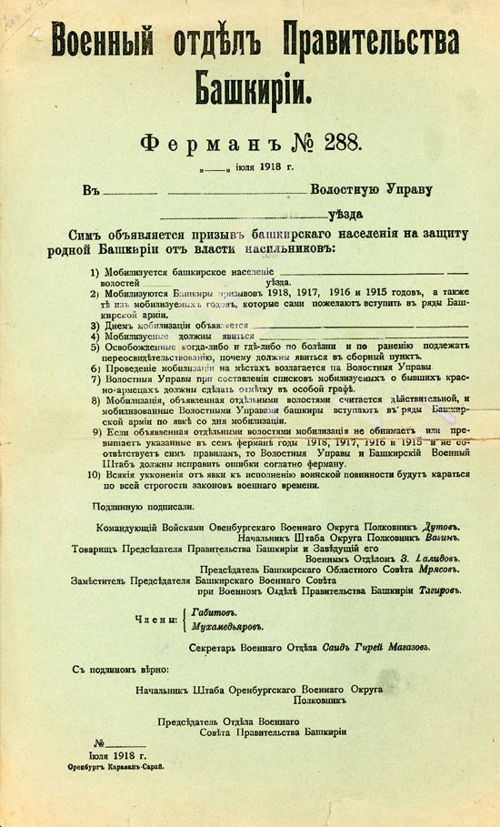 Лит.: Касимов С.Ф. Автономия Башкортостана: становление национальной государственности башкирского народа (1917—1925 гг.). Уфа, 1997; Кульшарипов М.М. Башкирское национальное движение (1917—1921 гг.). Уфа, 2000; Национально‑государственное устройство Башкортостана (1917—1925 гг.): Документы и материалы. Т.1; Т.2. Ч.1. Уфа, 2002.