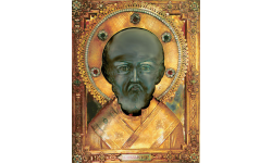 БЕРЁЗОВСКАЯ СВЯТИТЕЛЯ НИКОЛАЯ ЧУДОТВОРЦА ИКОНА чудотворная. Икона с изображением святителя Николая Чудотворца по грудь, в омофоре, с непокрытой головой. Размер ок. 34х27 см. По одному из наиб. распространённых преданий, обретена в 50—60‑е гг. 16 в. близ с.Никольское Уфимского уезда (ныне с.Николо-Берёзовка...